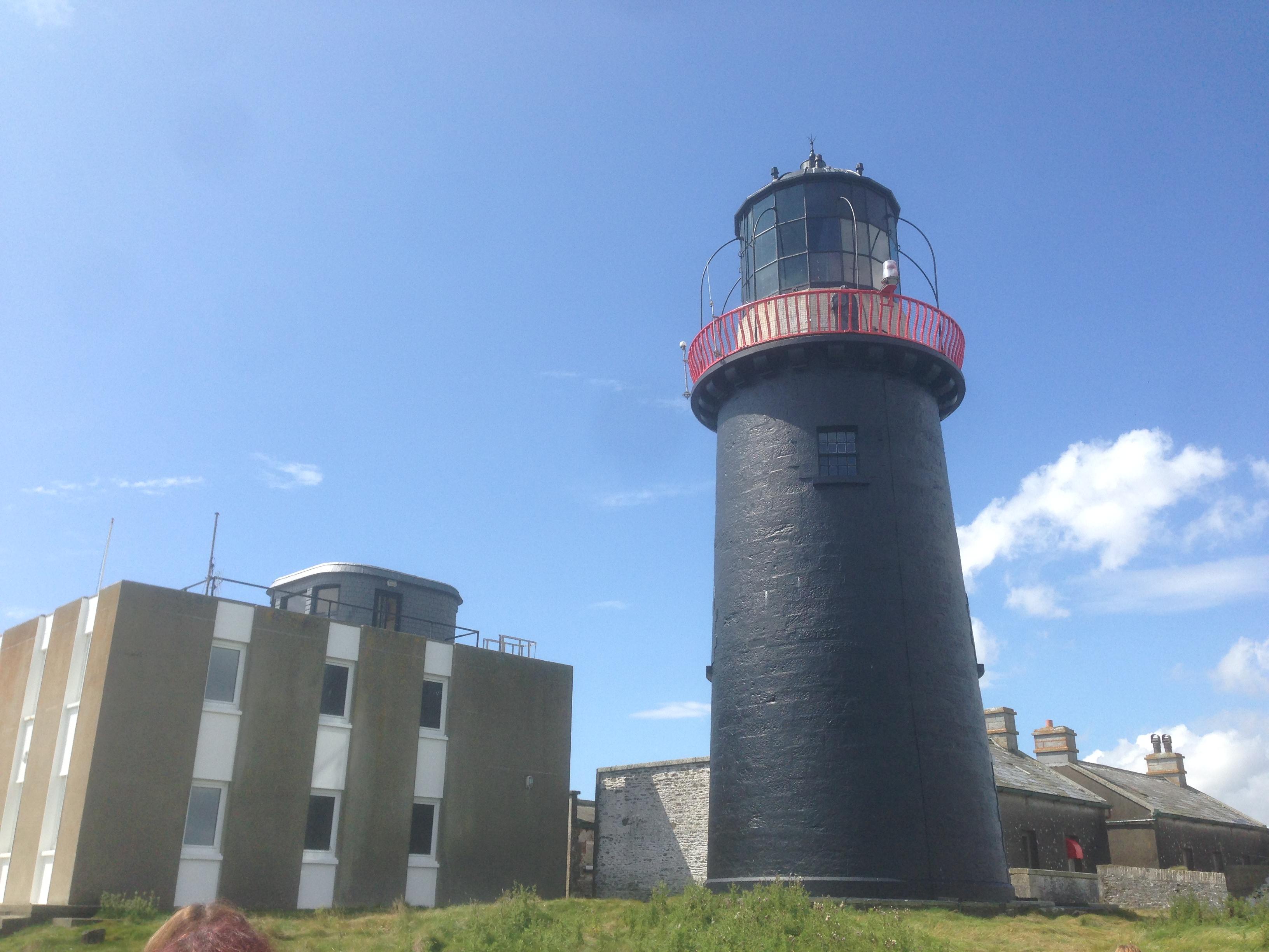 ‘I’d a hen party out here last Monday,’ the tour guide says. We’re walking up the hill from the small jetty at Ballycotton Island to the lighthouse. Between the matt black – this lighthouse is one of only two in Ireland painted black – and the red glow from the lamps at the top, it looms ahead like an overgrown Tardis. I’m half expecting the Doctor Who of my childhood, all curly hair and long scarf, to appear around the bend, accompanied by a pulsating woo-hoo-woo soundtrack. We pause half way up at what she tells us is called the ‘elbow’. The lighthouse keepers would stop here for a breather while lugging their provisions from the boat to the top. (The keepers had hens, goats and a flourishing kitchen garden, presumably in an attempt to keep the hauling uphill to a minimum.) But there wouldn’t be a lighthouse at Ballycotton – black or otherwise – if it wasn’t for the ill-fated paddle-steamship Sirius. Work on a new lighthouse on nearby Capel Head was already well underway when the Sirius struck Smith’s Rock south west of Ballycotton early one foggy Saturday morning in January 1847. In April 1838 it had found fame as the first vessel to cross the Atlantic Ocean completely under steam, but the treacherous underwater rocks of East Cork and terrible weather conditions meant the end for the Sirius (not to mention 19 of those on board). The London Daily News a few days later reported, ‘…amidst the confusion and alarm that prevailed the life-boat which is usually carried over the paddle-box was attached to the davits and lowered though unfortunately on the wrong side of the ship … melancholy to relate, she was swamped and all in her met a watery grave save Captain Cameron of the Prince river steamer who was a passenger from Dublin in the vessel.’ As a result, it was decided to build the lighthouse on the nine-acre site of Ballycotton Island instead. It commenced operation in 1851 and was permanently staffed by keepers until it was converted to automatic in 1992 and placed in the care of an attendant. Gulls and goats have had their run of the place for years, but thanks to an active local campaign and the support of the Commissioners for Irish Lights, they are once more forced to share it with the newly-launched Ballycotton Island Lighthouse Tours. Two small cottages sit to one side of the lighthouse. One was once used for accommodation until in the 1970s a new building took over this function. An unfortunately ugly lump of a thing, locals call it the Ballycotton Hilton (see image below). ‘It looks like my primary school,’ a man remarks. The closer I get to the lighthouse itself, the more benign the black and red colour palette becomes, and once through the door it is nothing other than beautiful. From the 1.5m thick sandstone walls to the stairs made from granite slabs, our little tour group clusters inside the door to marvel at the labour that created this example of Victorian precision and dedication. Above us, an oak handrail curls upwards and the dark twists of the ceiling are that of a fossilized shell (see image to the right, below). It’s a hot day and outside at the foot of the lighthouse the air was still and unmoving. It hung heavy, smelling of calm seas and dry grass. Yet several floors up on the observation deck a breeze whips crossly around us.