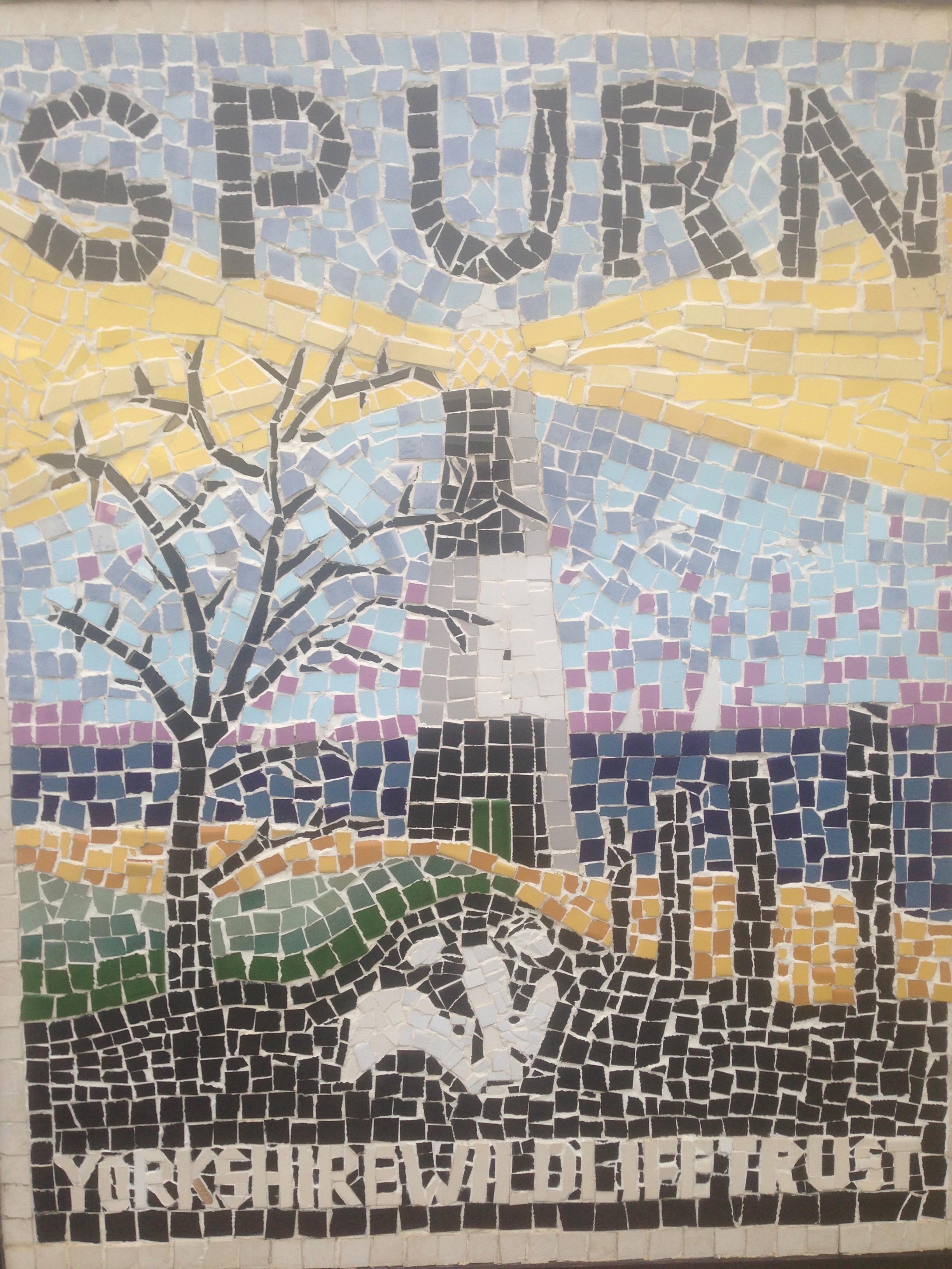And that’s the first detour. There are more to come because we are going to Spurn Head via Flamborough Head via Bridlington. There are elements of the deserted village about Bridlington too when we arrive, the rain in tow. It warrants a mention in the Domesday Book apparently, but these days seems to be most famous as the former home of artist David Hockney. We walk in the wind past the Aloha Hawaiian café (also offers Tex Mex, in case you’re wondering) and down a long seafront with lots of beach and churned water that manages to be both brown and grey all at once. There is a lot of grey in Bridlington. And for variety, greyey-brown and greyey-blue and also some greyey-black. I imagine David Hockney looking out his window and desperately recreating the desiccated blues and yellows of California to warm himself up. It must be very different in summer; the town certainly seems set up for holidaymakers in a traditional guesthouse and chips-for-tea sort of way. Unusually, it has a town crier, but he wasn’t in evidence. Probably at home, keeping dry. Passing the Bridlington Spa, a local community centre and music venue on the seafront, we peer through the window at an art class and speculate what it was like for other local artists when David Hockney took up residence in the town.