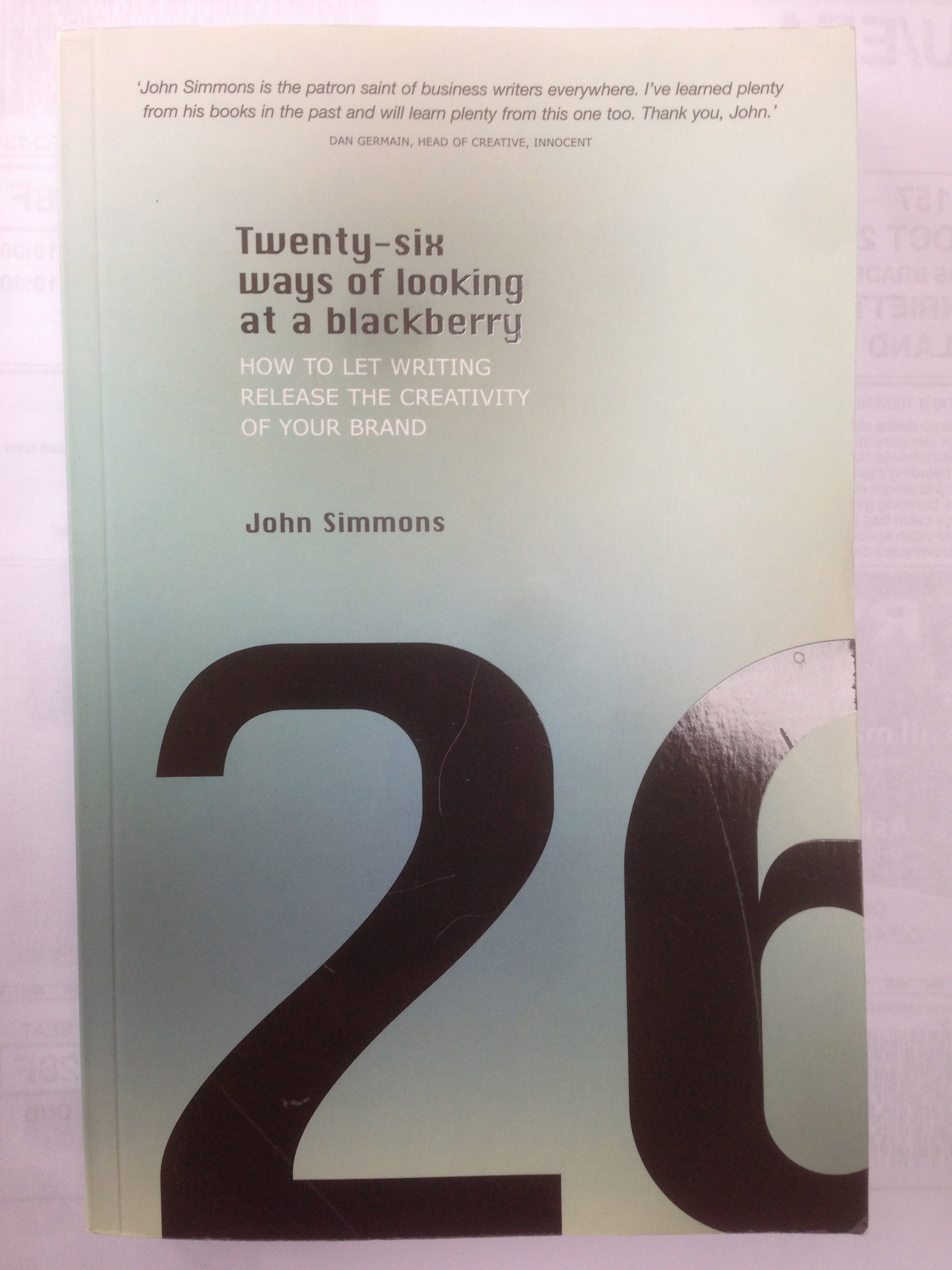A couple of years ago I came across the collective 26. I don’t remember exactly how, but most likely while reading an old blog piece by writer-for-business and one of 26’s co-founders John Simmons. A highly regarded copywriter and former writing juror for D&AD, his books on writing and why tone of voice matters in design and advertising are must-reads for business writers. I recommend starting with We, Me, Them & It then if you’re thirsty for more (sorry) Innocent: Building A Brand From Nothing But Fruit. I took two of his D&AD copywriting workshops some years ago and he is as enthusiastic and encouraging in person as in print. After one of the workshops he asked if he could include a piece I wrote in his book Twenty-six ways of looking at a blackberry. (My answer: ‘cripes, yes please!’)